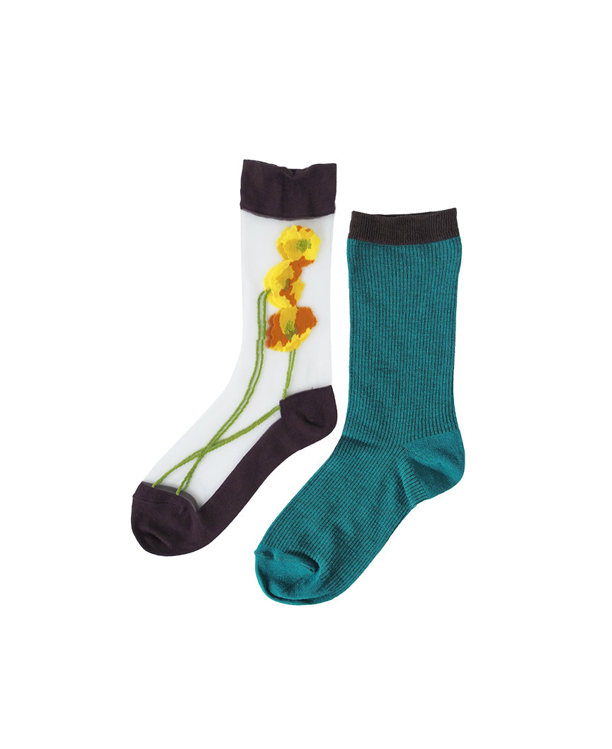 編み目の細かいコットン素材のソックスとシースルーソックスがセットになりました。