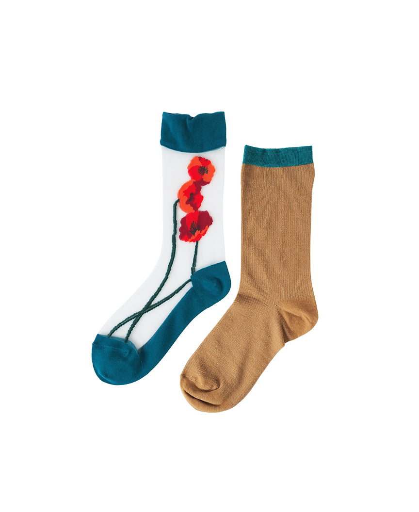 編み目の細かいコットン素材のソックスとシースルーソックスがセットになりました。
