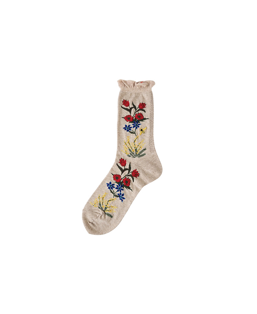 ハイゲージクルーソックス 刺繍 フラワー グレージュ サイズ1です。