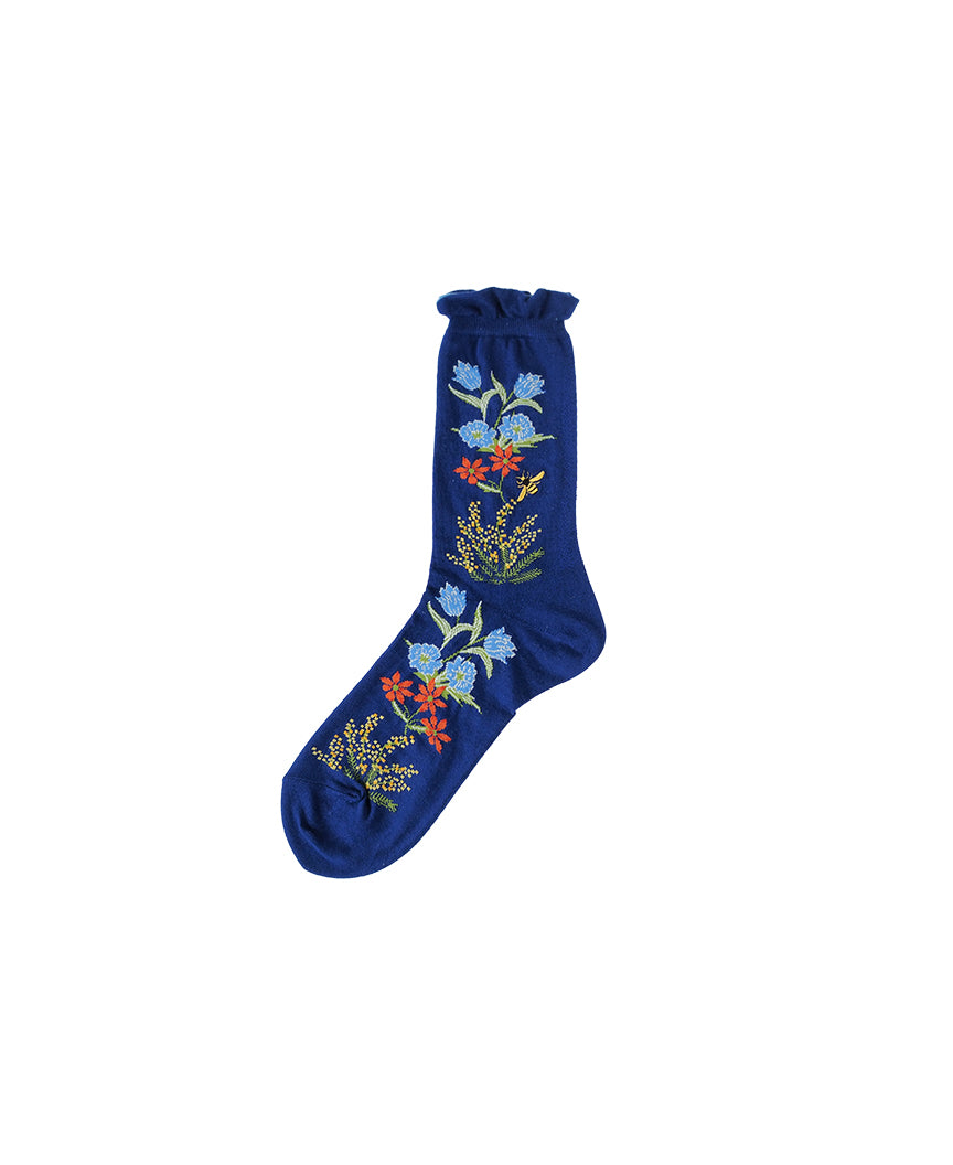 ハイゲージクルーソックス 刺繍 フラワー ブルー サイズ1です。